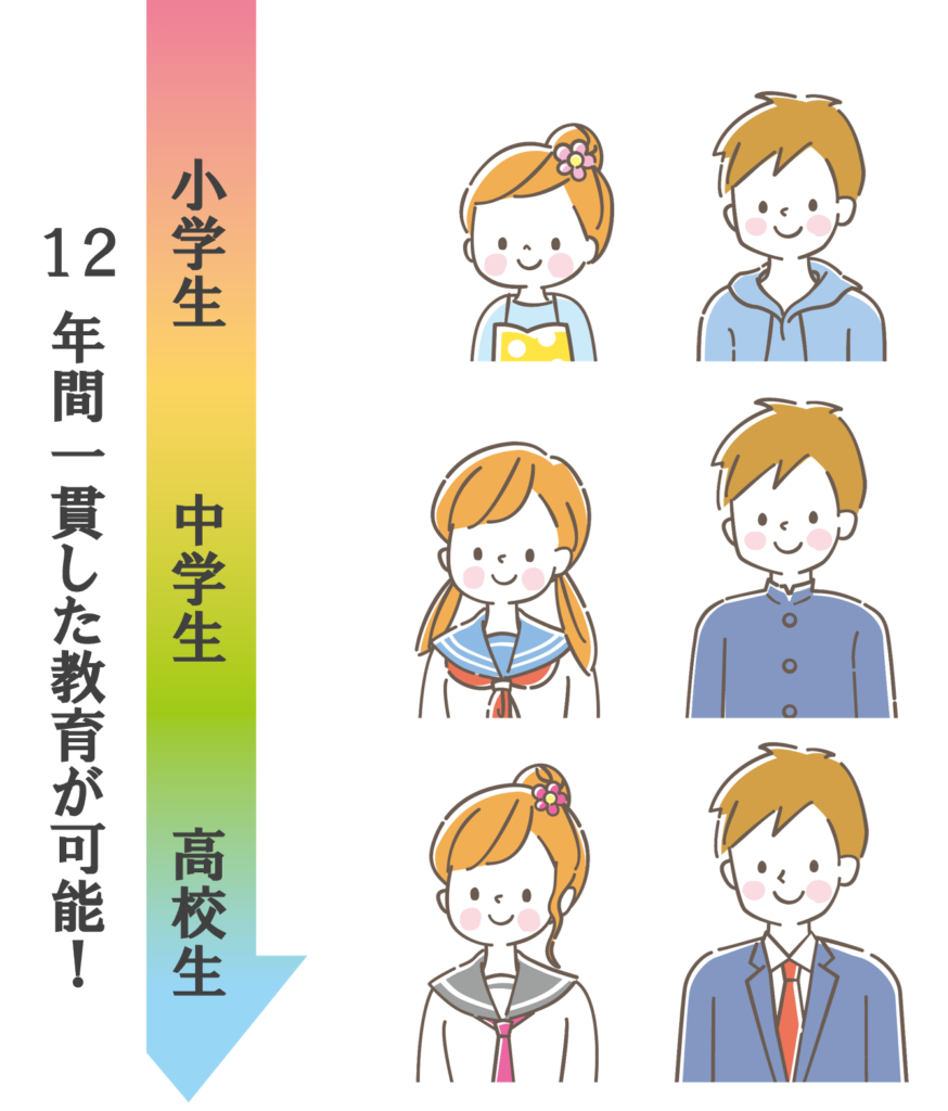 小学校・中学校・高校で分断されたカリキュラムではなく12年間一貫して「その生徒が学びたいこと」を中心にしたカリキュラムを作成し、それぞれのペースで学べるから学習の遅れは気にしなくて大丈夫。